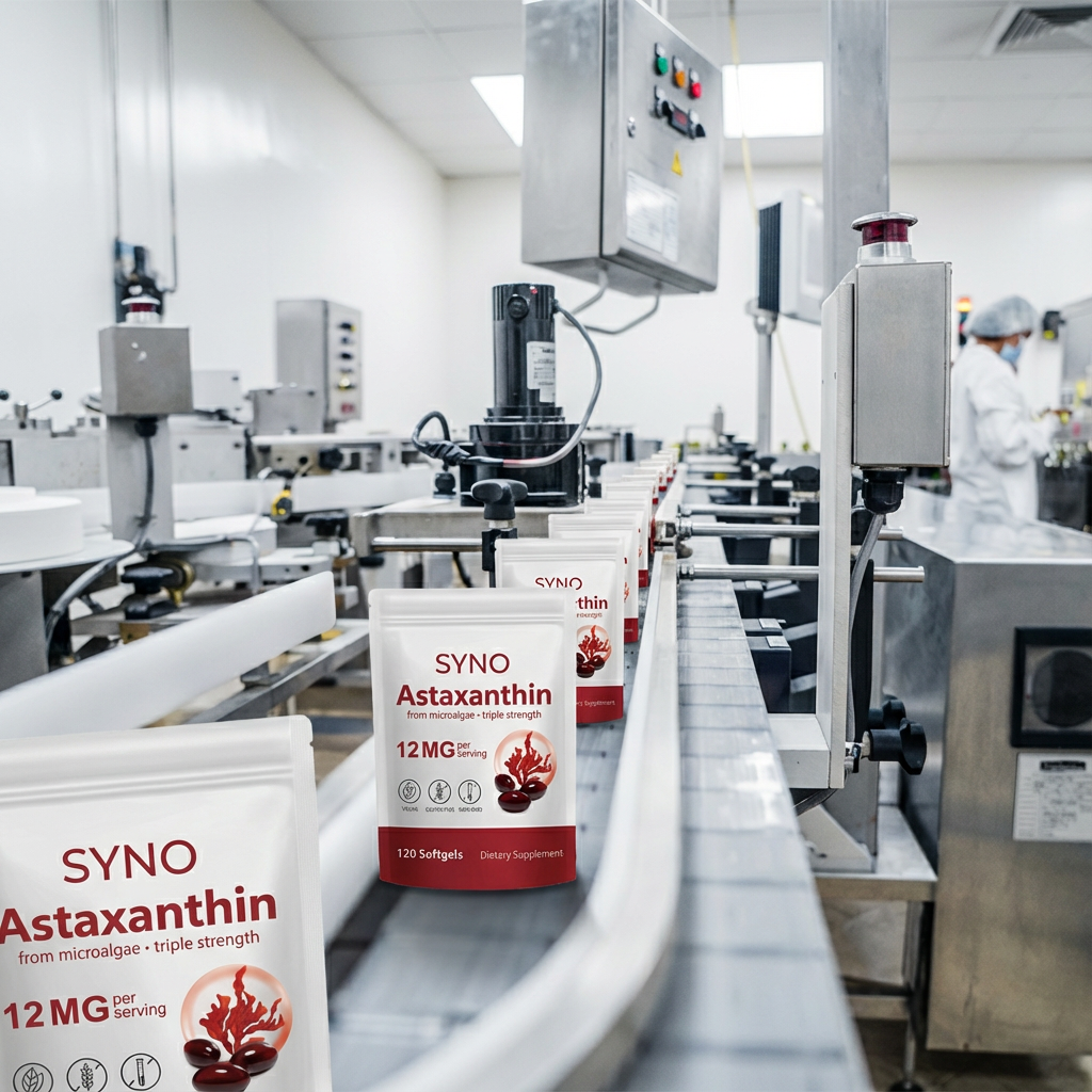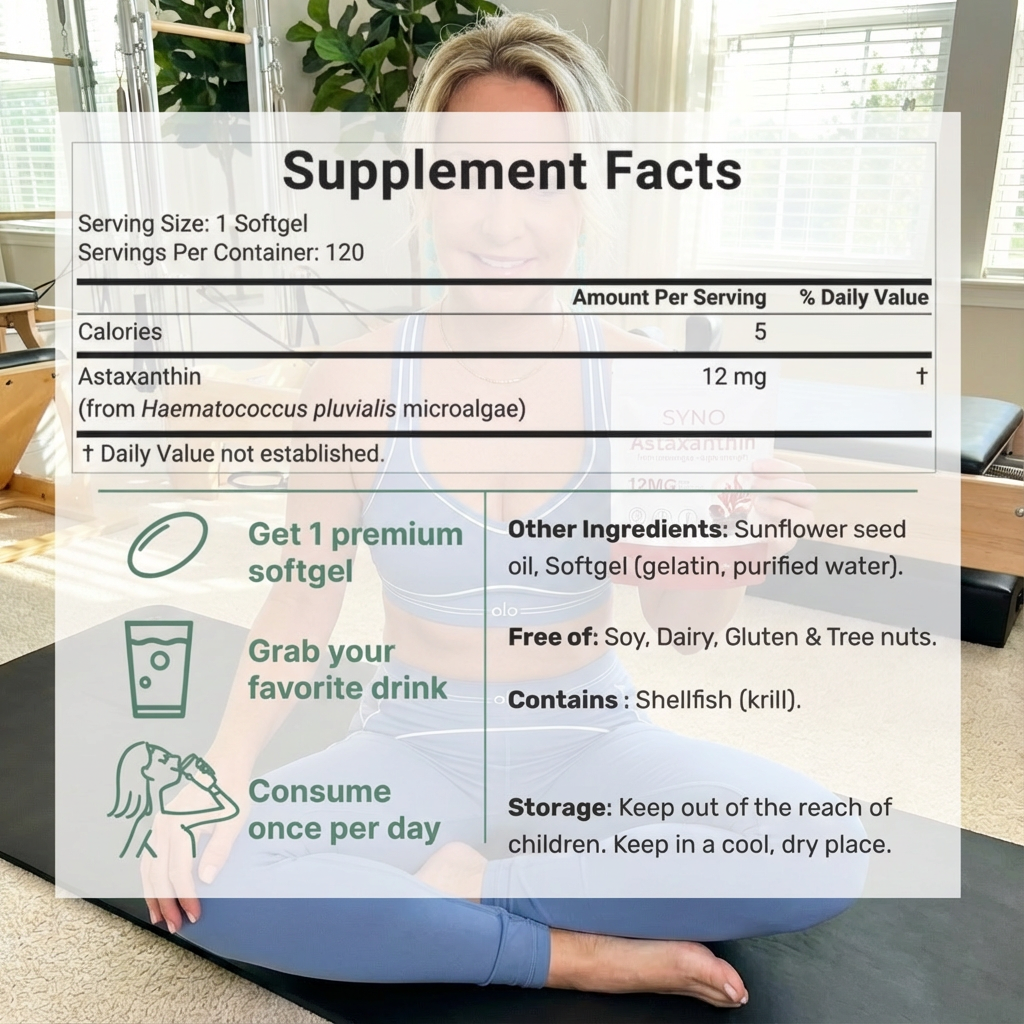 SYNO uses natural astaxanthin sourced from Haematococcus Pluvialis microalgae, the most researched and trusted source. No synthetic astaxanthin is used.