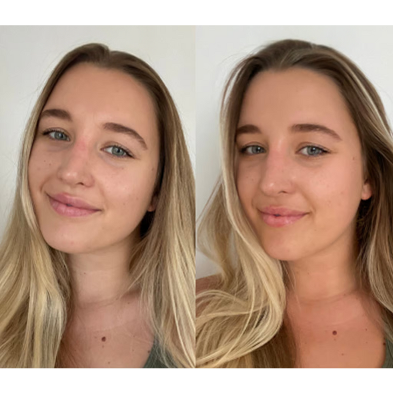 Most women report a brighter, more radiant-looking complexion, smoother texture, and a healthier glow with consistent use. Many also notice calmer-looking skin and a more even tone over time.